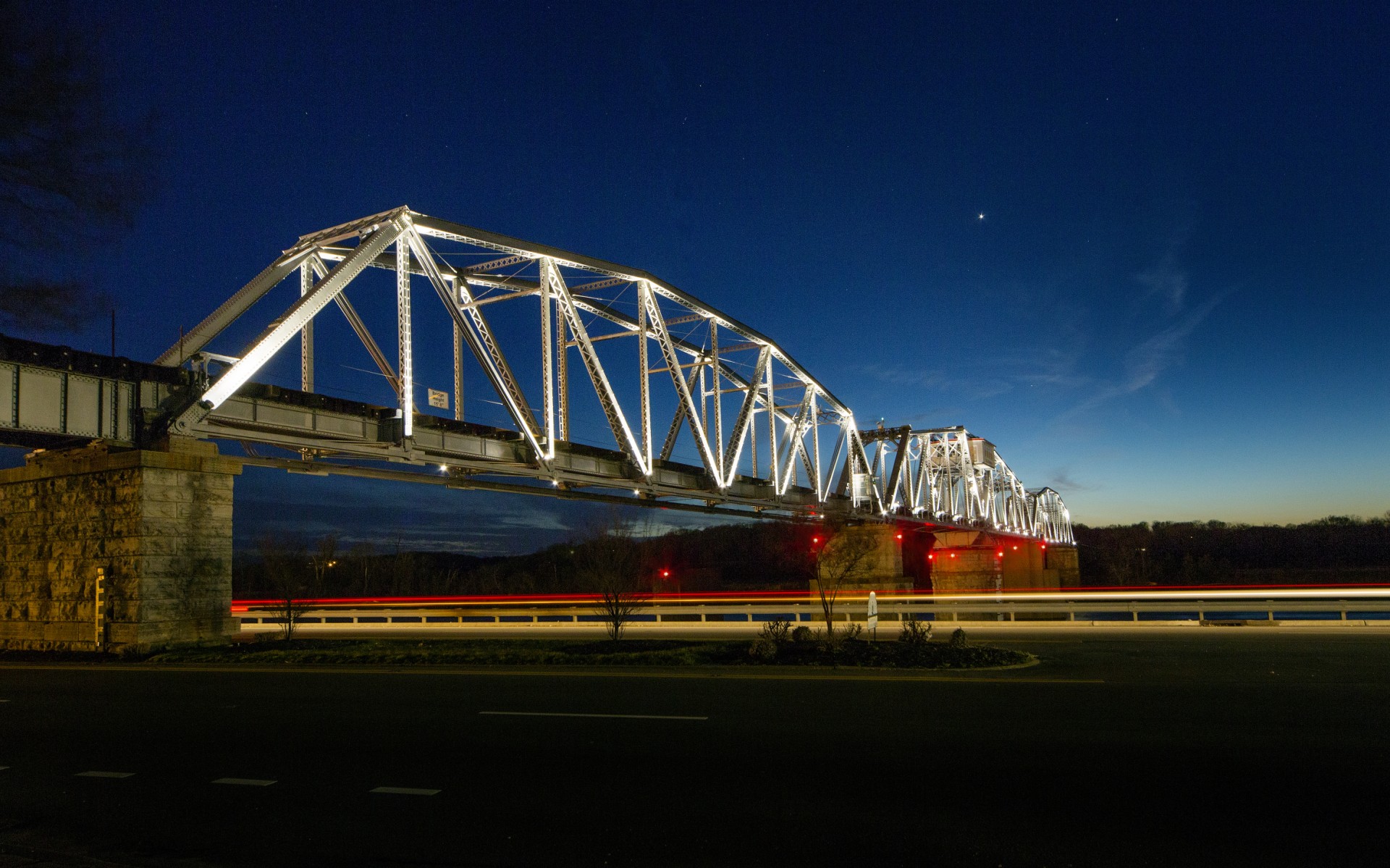 桥梁的景观设计虽然与建筑景观设计有相通之处,但其巨大的体量及带状的格局使景观有一些自身的规律,而桥形艺术高潮处如桥塔桥台桥墩等,则可形成亮点,这种点线结合的景观格局更能体现桥梁个性与本质美。桥梁的景观照明设计灯色不仅有软质景观特点,其灯具还是桥面重要的硬质景观,灯具造型所传达的信息还是桥梁景观理念表达的重要方面。