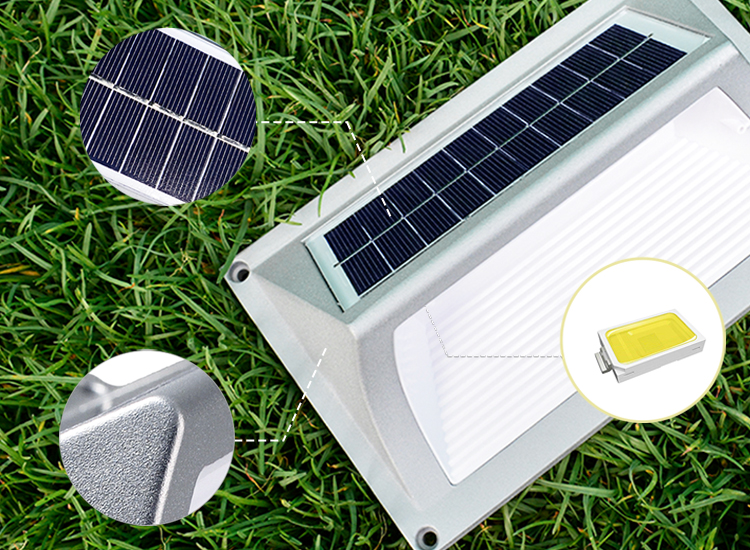加厚一体压铸铝材,抗压抗腐蚀; A级多晶硅太阳能板,转化更高,充电快; 欧司朗进口灯珠,无光衰,低能耗